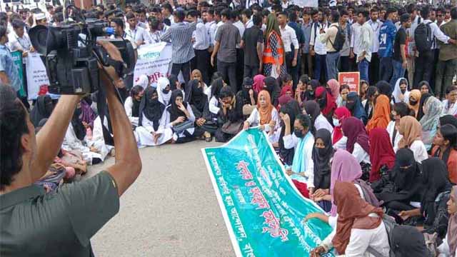 Students from polytechnic institutes have blocked the Satrasta intersection in Tejgaon, Dhaka, protesting the alleged destruction of the technical education system and the shrinking of engineering job opportunities. They also demanded the implementation of their three-point charter of demands.