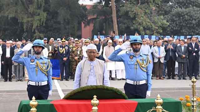 They were followed by Liberation War Affairs Adviser Faruk E Azam, Bir Protik, and the chiefs of the Army, Navy, and Air Staff, who all paid their final respects.