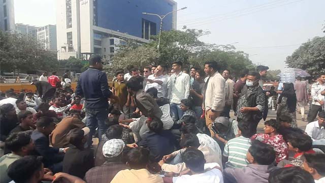 The protest began around 11:00 am on Sunday (January 18) in front of the EC’s main office in Agargaon and continued until 1:30 pm. As part of a pre-announced programme, the demonstrators peacefully occupied the road to press their demands.