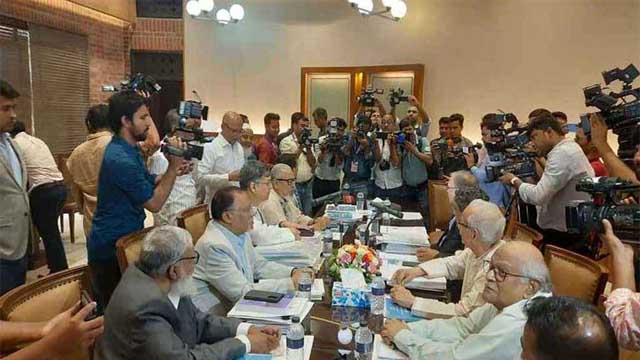 The meeting is being chaired by Professor Ali Riaz, Vice President of the Consensus Commission. Other commission members present include Iftekharuzzaman, Justice Emdadul Haque, Badiul Alam Majumdar, Safar Raj Hossain, and the Chief Advisor's Special Assistant, Monir Haider.