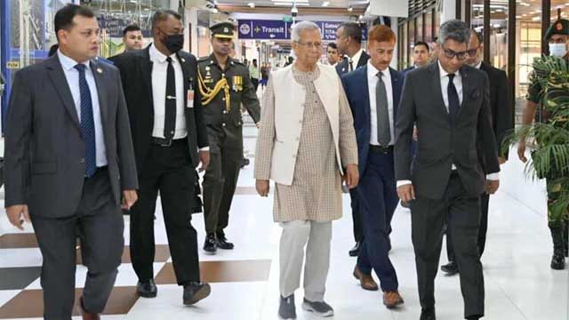 A flight of Biman Bangladesh Airlines carrying the Chief Adviser and his entourage departed Hazrat Shahjalal International Airport in Dhaka at about 2 pm, Chief Adviser's Deputy Press Secretary Abul Kalam Azad Majumder said.