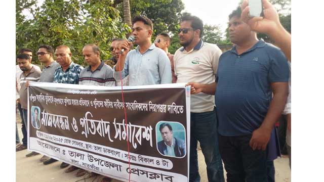 Satkhira Tala Upazila Press Club has formed a human chain in protest of the murder of Asaduzzaman Tuhin in Gazipur and demanding the hanging of the journalist and the security of the journalists.